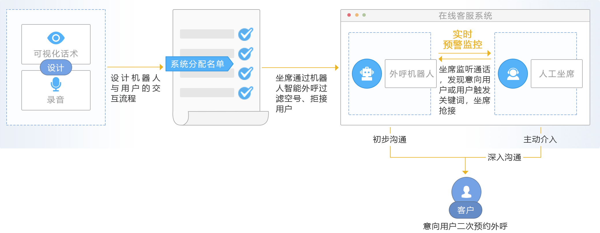 坐席实时听取机器人与用户对话,发现价值用户立即接管